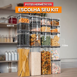 Kit até 17 Potes Herméticos Com Tampa Quadrados Empilháveis