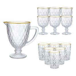Coleção Diamond com Borda Dourada - Jarra, Taças e Copos